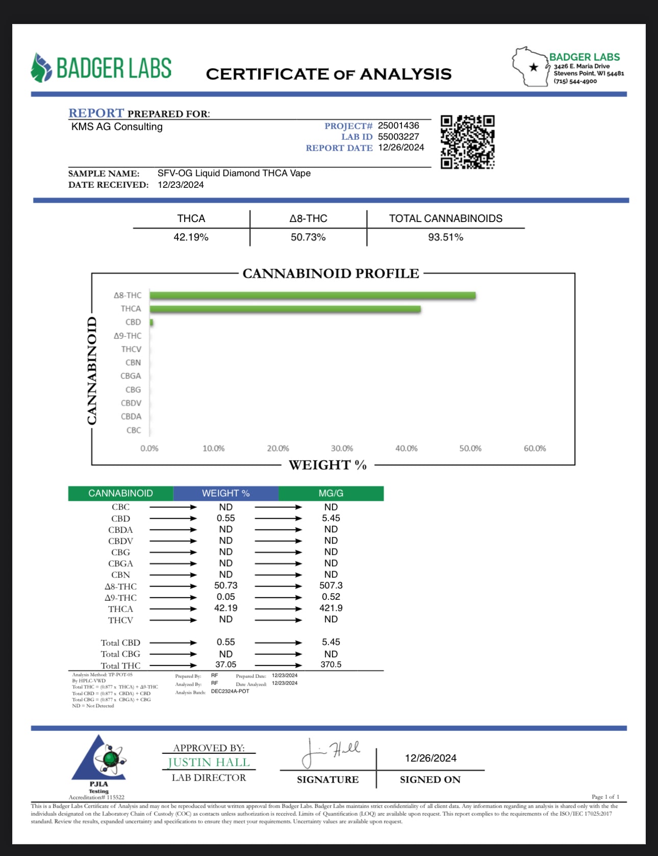 SFV OG KUSH 2 Gram disposable THCa 93.51%